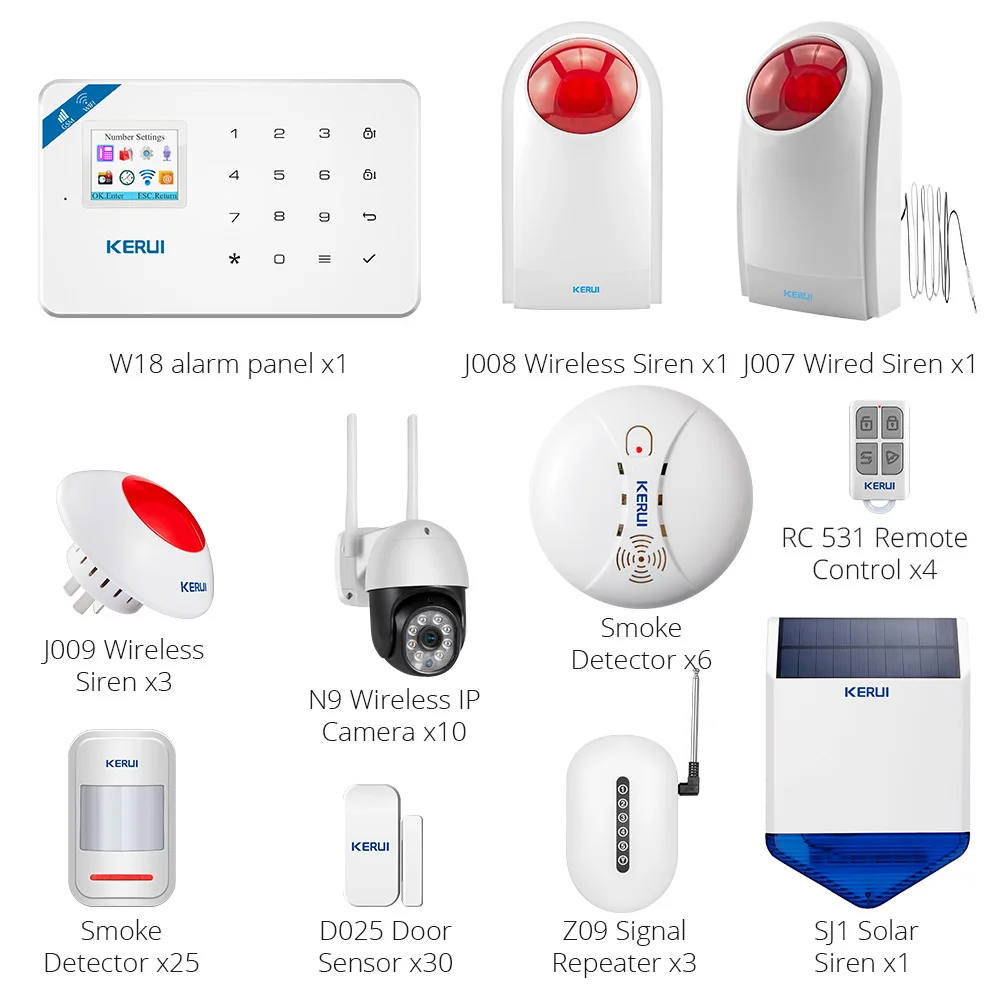 Addition Information of KERUI Home Alarm K52 WiFi GSM Alarm Systems Security Home 4.3 inch Full Touch Screen Panel Motion Dectetor Door Sensor IP camera