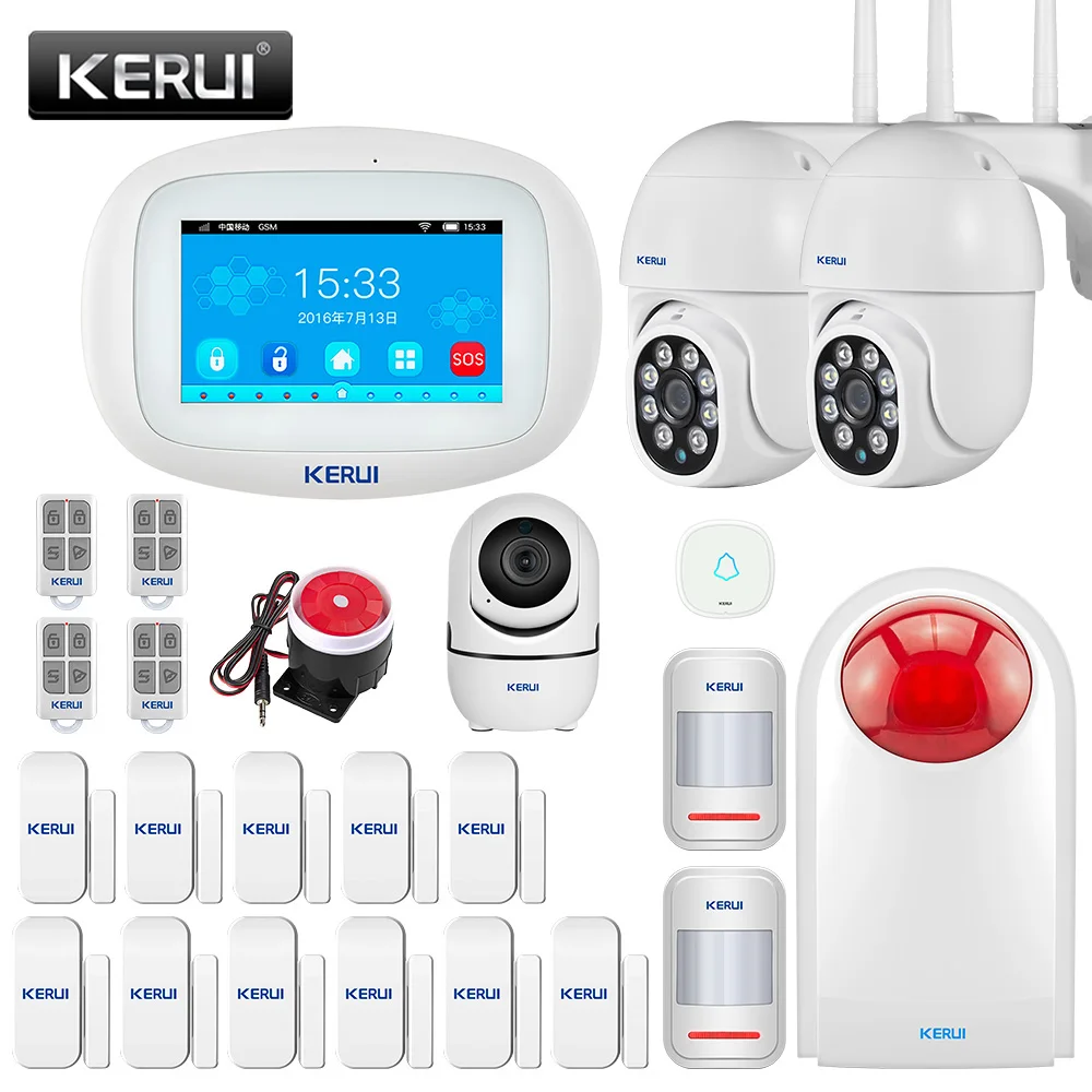 KERUI Home Alarm K52 WiFi GSM Alarm Systems Security Home 4.3 inch Full Touch Screen Panel Motion Dectetor Door Sensor IP camera