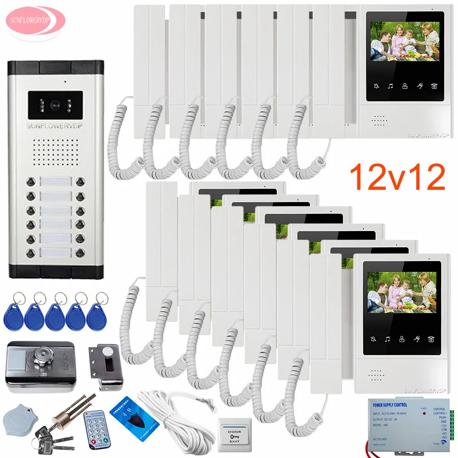 Best Offer for Videophone 12 Villas 4.3 '' Video Door Phone Set Video Call for The Entrance Door Video Phone House +Rfid Unlock Electronic Lock