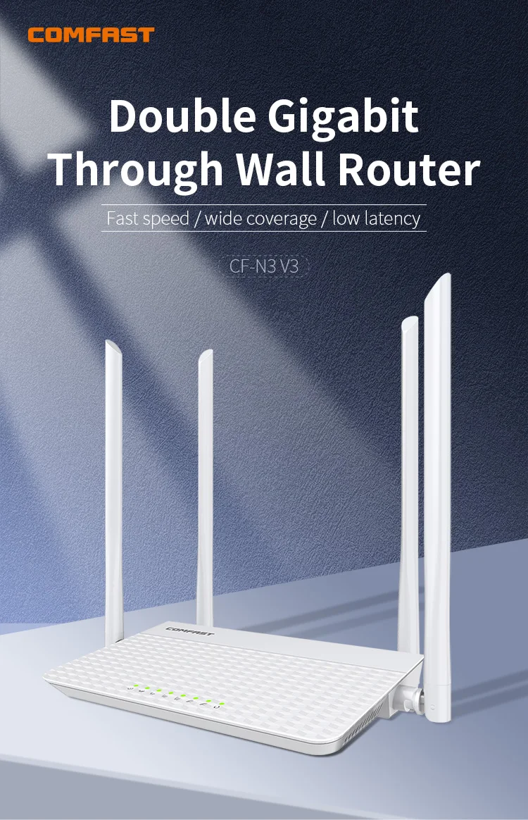 COMFAST WiFi Router Wireless Receiver Dual Band CF-N3 V3 1200Mbps Dual-Band 2.4/5GHz Gigabit Repeater with 4x High Gain Antenna