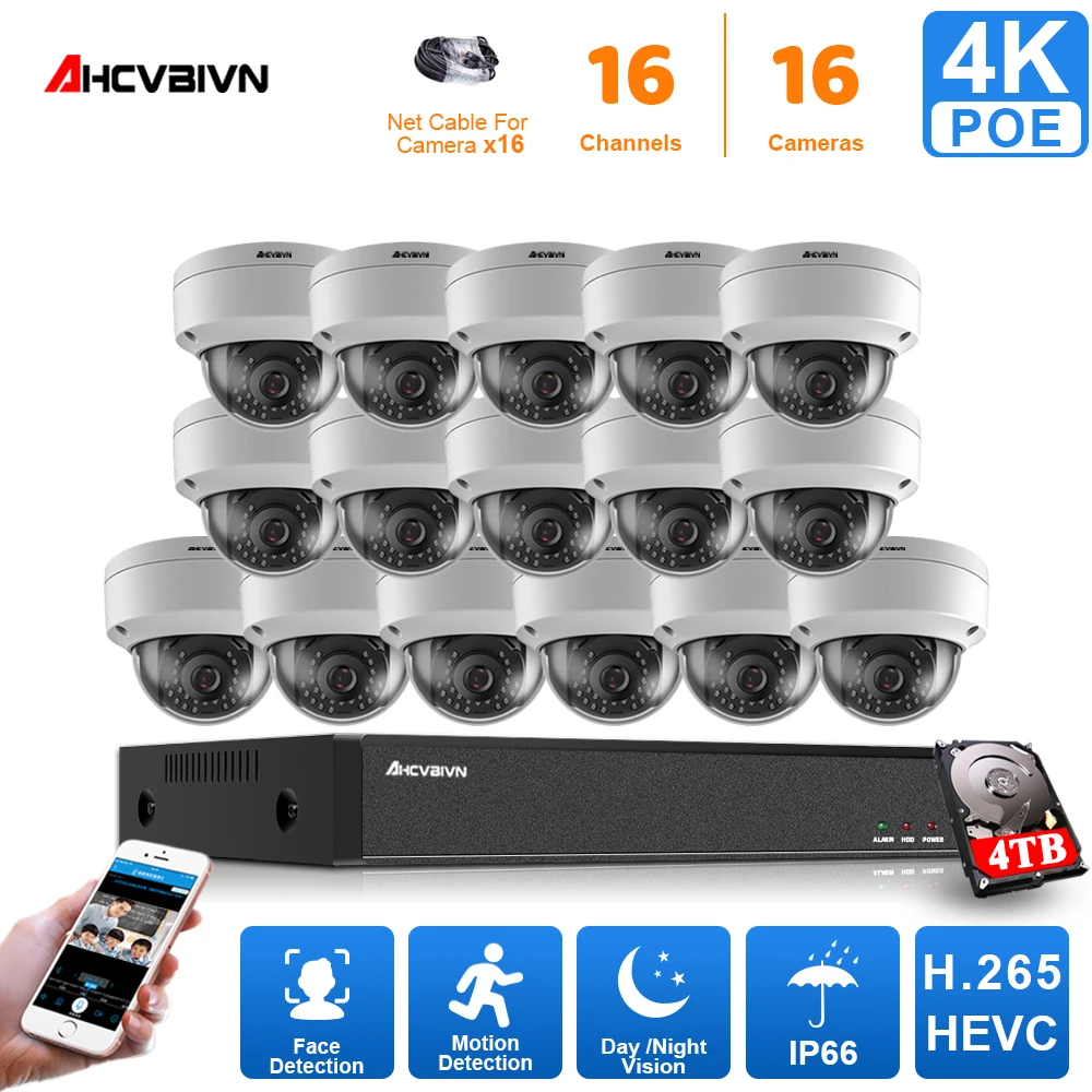 Home 4k POE Camera Security System Kit POE 8MP 16ch Indoor/Outdoor Waterproof IP Dome CCTV Video Surveillance Systems Set